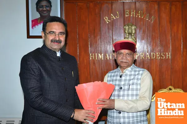 Caption : Shimla: Haryana Legislative Assembly Speaker Harvinder Kalyan meets Himachal Pradesh Governor Shiv Pratap Shukla at Raj Bhavan in Shimla on Monday, March 24, 2025.