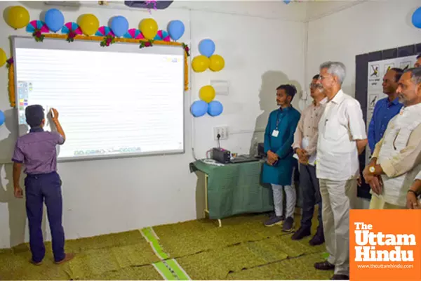 Caption : Narmada : External Affairs Minister S. Jaishankar during the inauguration of the Smart Anganwadi and Smart Classroom during his visit to Lachras on Tuesday, April 15, 2025.