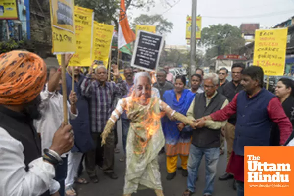 Caption : Kolkata: Congress activists stage a demonstration protesting against the anti-people budget and economic policies in Kolkata, on Thursday, January 30, 2025.