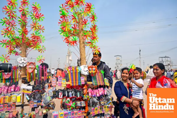 Caption : Prayagraj: A vendor sells various items to devotees at the Triveni Sangam, the confluence of the Ganga, Yamuna, and the mythical Saraswati rivers, on the occasion of 'Maha Shivratri' during the ongoing Maha Kumbh Mela 2025 in Prayagraj, on Wednesday, February 26, 2025.