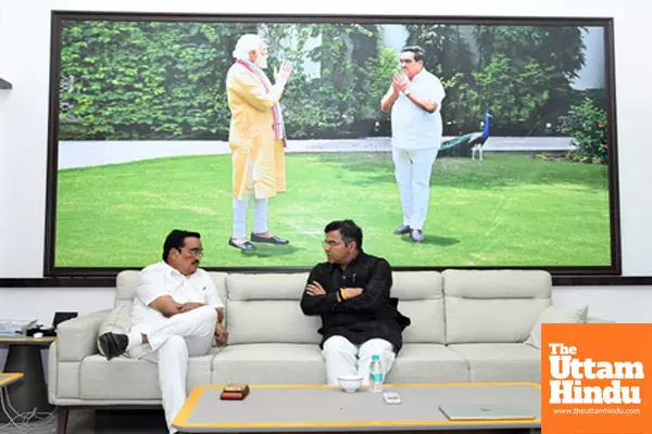 Caption : New Delhi: Delhi Minister Parvesh Verma meets Union Minister of Jal Shakti CR Paatil to discuss strengthening water supply in New Delhi on Wednesday, April 23, 2025.