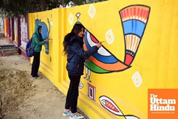 Prayagraj: Artists paint a wall with intricate and vibrant scriptures as the part of preprations