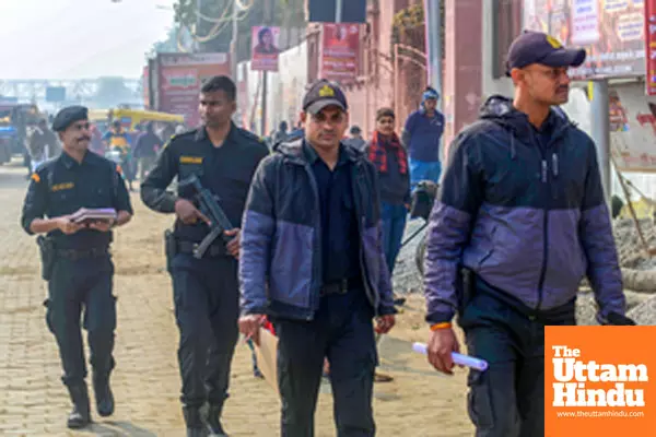 Prayagraj: ATS (Anti-Terrorist Squad) personnel patrol the Sangam area ahead of the Maha Kumbh Mela 2025