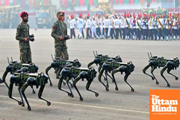 Pune: Quadruped robots demonstrate their capabilities during the full dress rehearsals for the Army Day Parade 2025 in Pune on Saturday, January 11, 2025.