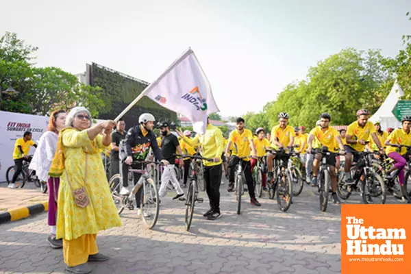 New Delhi(The Uttam Hindu): India witnessed yet another vibrant edition of the ‘Fit India Sundays on Cycle’, with over 300 events conducted simultaneously across the country. Sujata Chaturvedi, secretary, Sports, flagged off the national capital’s edition at New Moti Bagh, energising the crowd and reinforcing the national momentum towards fitness. Communities, athletes, police departments, and residents across the nation pedalled with purpose, celebrating fitness, fun, and environmental awareness under the campaign led by the Ministry of Youth Affairs and Sports.