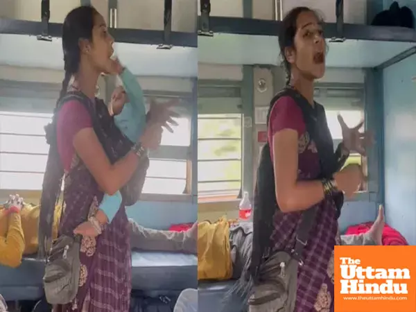New Delhi (The Uttam Hindu): Hunger can make a person do anything, especially when the responsibility lies on the shoulders of a single mother and there is no support to feed her. These days, one such emotional video is going viral on social media. In this, a helpless mother is seen asking for help by singing a song in a moving train while holding her innocent child in her lap. The most special thing is that this woman is not begging, but is managing to earn two meals a day with dignity on the strength of her melodious voice and talent on the tune of stones.