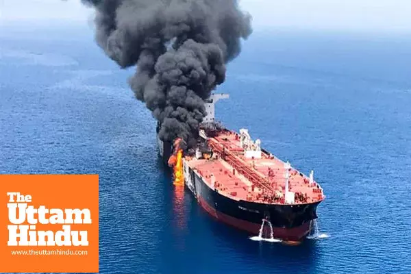 New Delhi (The Uttam Hindu): Amid the ongoing conflict between Israel and Iran, regional tensions have escalated sharply. On Sunday, an oil tanker was reportedly attacked in the strategically vital Strait of Hormuz. Four sailors were injured in the incident, while the vessel had a total crew of 20 members, including 15 Indians.