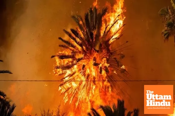 Los Angeles (The Uttam Hindu): A massive wildfire in Los Angeles has forced thousands of residents to evacuate their homes as the blaze spreads rapidly across multiple areas. Firefighters are working tirelessly to control the fire, which has already led to the evacuation of 30,000 people. The fire is particularly severe in the foothills of Pacific Palisades, a neighborhood home to several celebrities. Emergency services are assisting in relocating residents to safer areas.