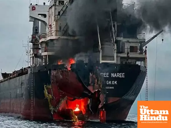 Bangkok (The Uttam Hindu): A Thai cargo ship was attacked in the Strait of Hormuz on Wednesday amid the ongoing military conflict in the Middle East. The Royal Thai Navy released photos and said 20 crew members had been rescued.