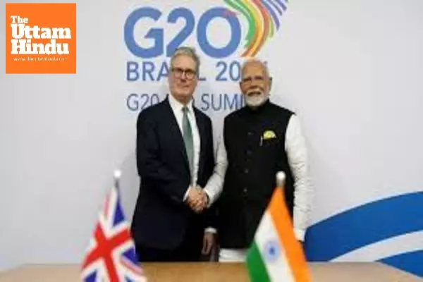 Rio de Janeiro (The Uttam Hindu): UK Prime Minister Keir Starmer on Tuesday described his talks with Prime Minister Narendra Modi as "productive" as he announced plans to relaunch bilateral trade negotiations. "A very productive meeting with Prime Minister Narendra Modi. Yesterday, we announced plans to relaunch UK-India trade talks. A new trade deal will support jobs and prosperity in the UK and represent a step forward in our mission to deliver growth and opportunity across the country," Starmer said in a post on X.